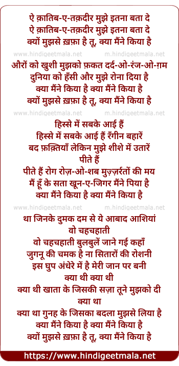 Lyrics of Ai Qaatib-E-Taqadir Mujhe Itanaa Bataa De - ऐ क़ातिब-ए-तक़दीर मुझे इतना बता दे