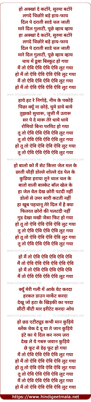 Lyrics of Main To Ainvayi Ainvayi Ainvayi Ainvayi Lut Gaya - मैं तो ऐवि ऐवि ऐवि ऐवि लुट गया