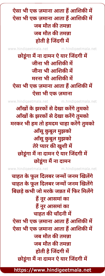 Lyrics of Aisa Bhi Ek Zamana Aata Hai - ऐसा भी एक ज़माना आता हैं आशिकी में