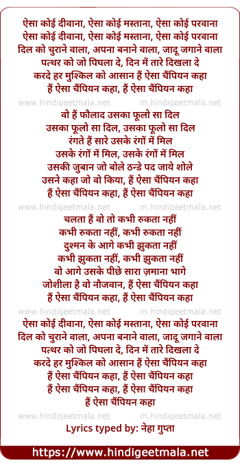Lyrics of Aisaa Champion Kaha - ऐसा चैंपियन कहाँ