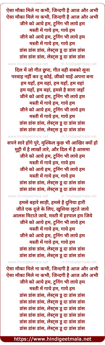 Lyrics of Aisa Mauka Mile Na Kabhi - ऐसा मौका मिले ना कभी
