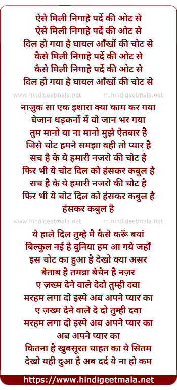 Lyrics of Aise Mili Nigaahein Parde Ki Oot Se - ऐसे मिली निगाहे पर्दे की ओट से