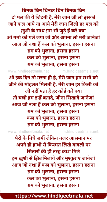 Lyrics of Gam Ko Bhulana, Hasna Hasna - ग़म को भुलाना, हँसना हँसना