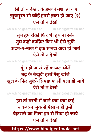 Aise To Na Dekho Ke Humko Nasha Ho Jaye - ऐसे तो ना देखो के हमको नशा हो जए