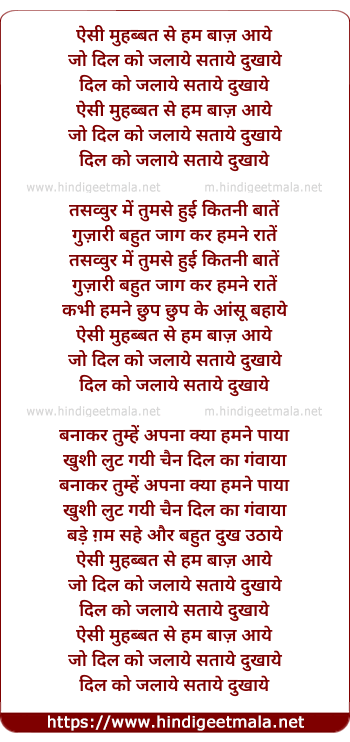 Lyrics of Aisee Muhobbat Se Ham Baaj Aaye - ऐसी मुहब्बत से हम बाज़ आये