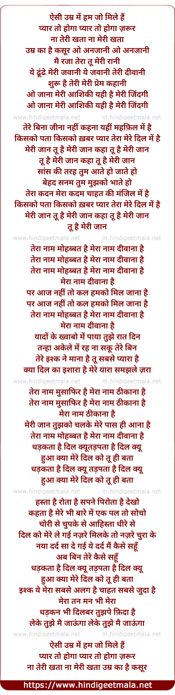 Lyrics of Aisee Umar Me Ham Jo Mile Hain - ऐसी उम्र में हम जो मिले हैं
