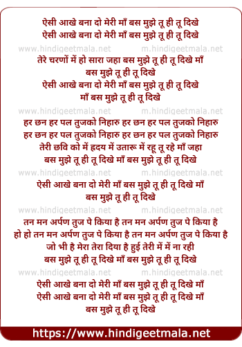 Lyrics of Aisi Aankhe Bana Do Meri Maa - ऐसी आँखे बना दो मेरी माँ