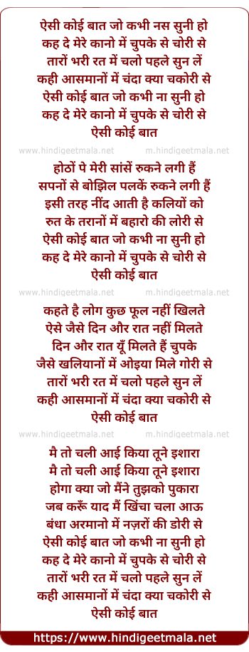 Lyrics of Aisi Koi Baat Jo Kabhi Na Suni Ho - ऐसी कोई बात जो कभी ना सुनी हो