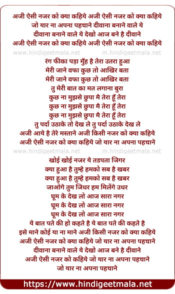Lyrics of Aji Aisi Nazar Ko Kya Kahiye - अजी ऐसी नजर को क्या कहिये