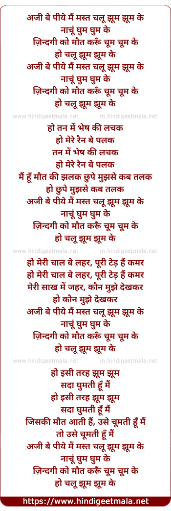 Lyrics of Aji Be Piye Mai Mast Chalu - अजी बे पीये मैं मस्त चलू