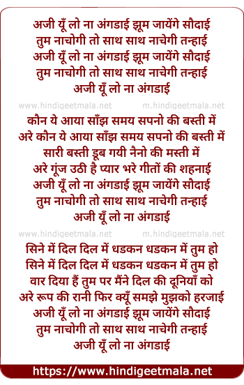 Lyrics of Aji Yu Lo Na Angadayi - अजी यूँ लो ना अंगडाई