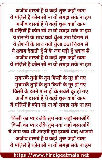 Lyrics of Ajib Dastan Hai Ye Kaha Shuru Kaha Khatam - अजीब दास्तां है ये कहाँ शुरू कहाँ खत्म