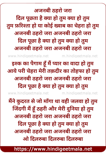 Lyrics of Ajnabi Thehro Zara - अजनबी ठहरो जरा