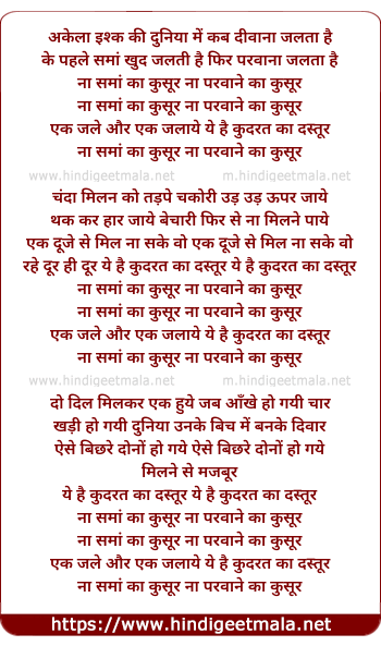 Lyrics of Akela Ishq Ki Duniya Me - अकेला इश्क की दुनिया में कब दीवाना जलता है