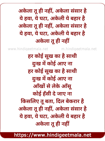 Lyrics of Akela Tu Hi Nahi Akela Sansar Hai - अकेला तू ही नहीं अकेला संसार है