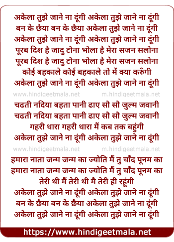 Lyrics of Akela Tujhe Jane Na Dungi - अकेला तुझे जाने ना दूंगी