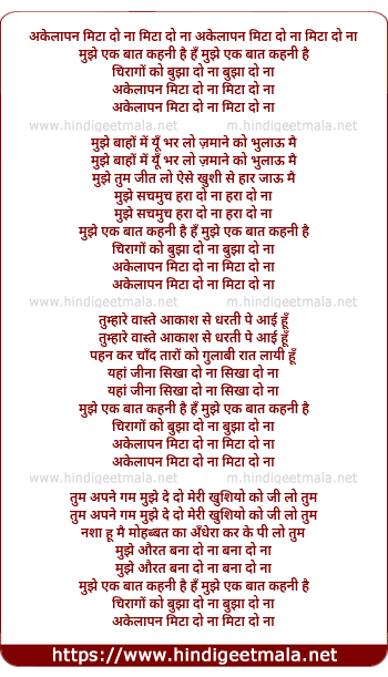Lyrics of Akelapan Mita Do Na Mujhe Ek Baat Kehni Hai - अकेलापन मिटा दो ना मुझे एक बात कहनी है