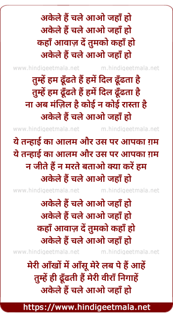 Poetic Translation - Lyrics of Akele Hai Chale Aao Jaha Ho - अकेले हैं चले आओ जहाँ हो