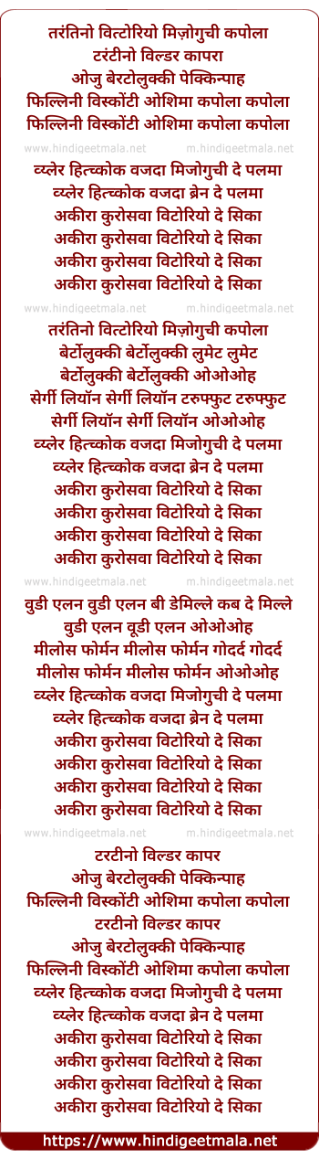 Lyrics of Akira Kurosawa - अकीरा कुरोसवा