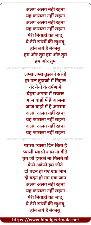 Lyrics of Alag Alag Nahi Rehna - अलग अलग नहीं रहना