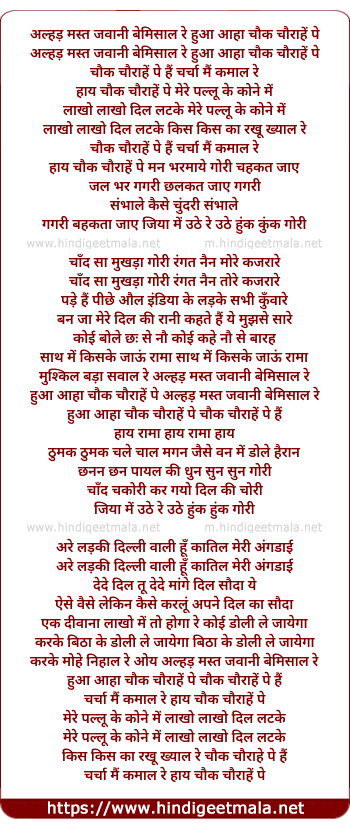 hua aaha chauk chaurahe pe alhad mast jawani bemisal re