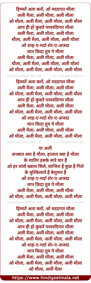 O Maula, Ali Maula, Ali Maula, Ali Maula.
