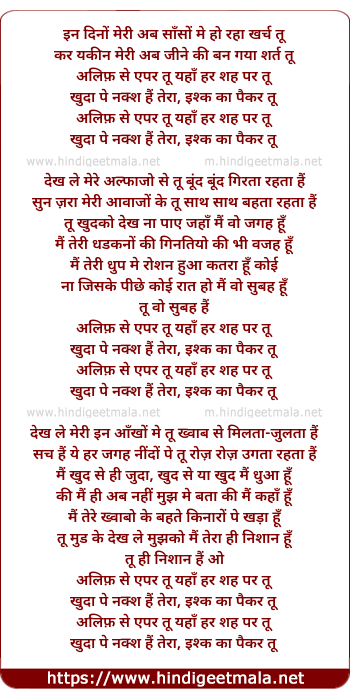Lyrics of Alif Se - अलिफ़ से