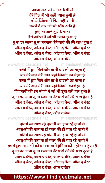 Lyrics of All The Best, All The Best - आल दा बेस्ट, आल दा बेस्ट