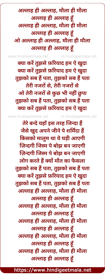 Lyrics of Allah Hi Allah (Ii) - अल्लाह ही अल्लाह, मौला ही मौला