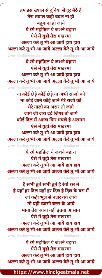 Lyrics of Allah Kare Tu Bhi Aa Jaye - अल्ला करे तू भी आ जाये