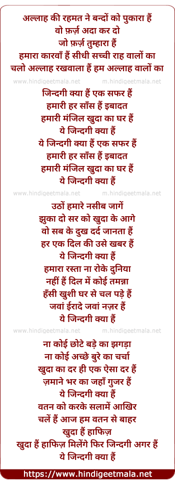 Poetic Translation - Lyrics of Allah Ki Rehmat Ne - अल्लाह की रहमत ने