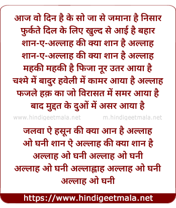 Lyrics of Allah O Ghani - अल्लाह ओ घनी