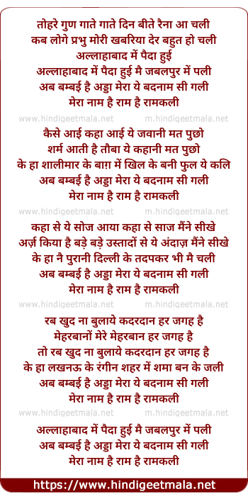 Lyrics of Allahbad Me Paida Hui - अल्लाहाबाद में पैदा हुई