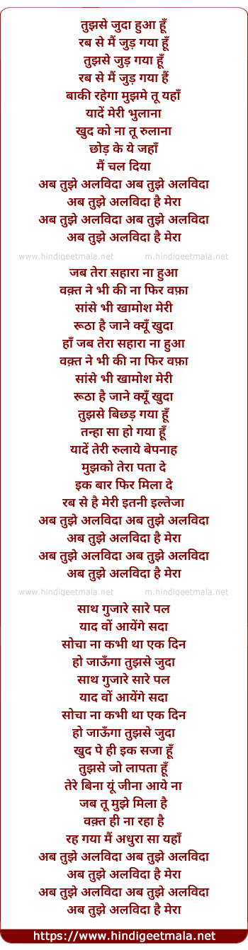 Lyrics of Alvida - तुझसे जुदा हुआ हूँ