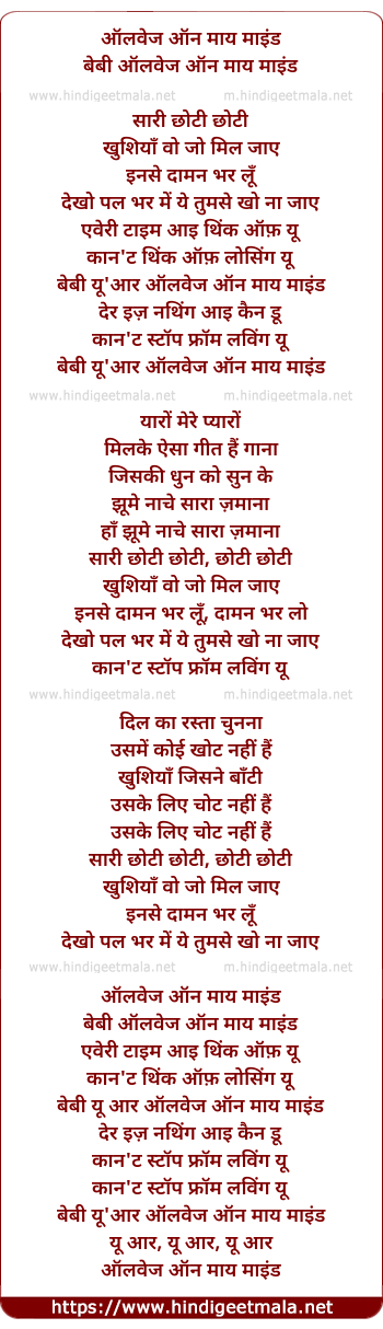 Lyrics of Always On My Mind - ऑलवेज ऑन माय माइंड