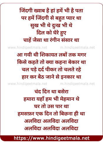 Poetic Translation - Lyrics of Alwida (2) - अलविदा (2)