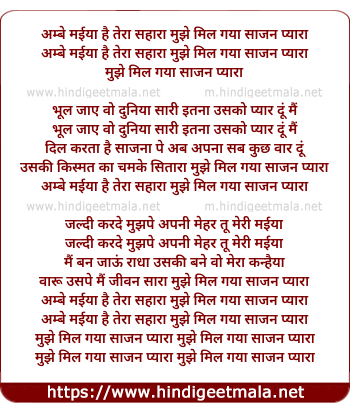 Lyrics of Ambe Maiya Hai Tera Sahra - अम्बे मईया है तेरा सहारा