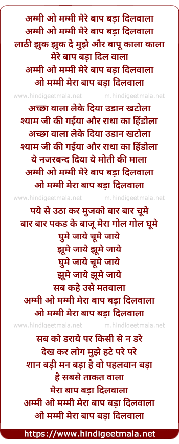 Lyrics of Ammi O Mummy, Mera Baap Bada Dilwala - अम्मी ओ मम्मी, मेरे बाप बड़ा दिलवाला