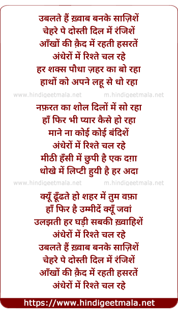 Lyrics of Andhero Mein Rishte Chal Rahe (Male) - अंधेरों में रिश्ते चल रहे