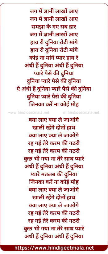 Lyrics of Andhi Duniya Matlab Ki Duniya - अंधी दुनिया मतलब की दुनिया
