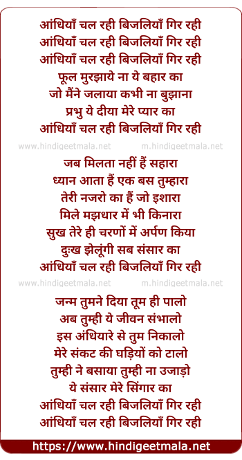 Lyrics of Andhiya Chal Rahi Bijaliya Gir Rahi - आंधियाँ चल रही बिजलियाँ गिर रही