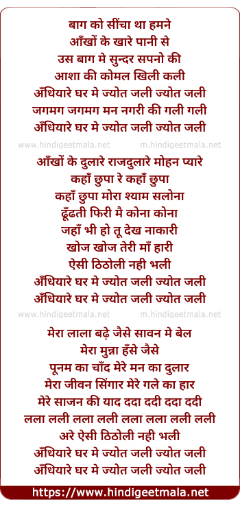 Lyrics of Andhiyare Ghar Me Joth Jali - अंधियारे घर में जोत जली