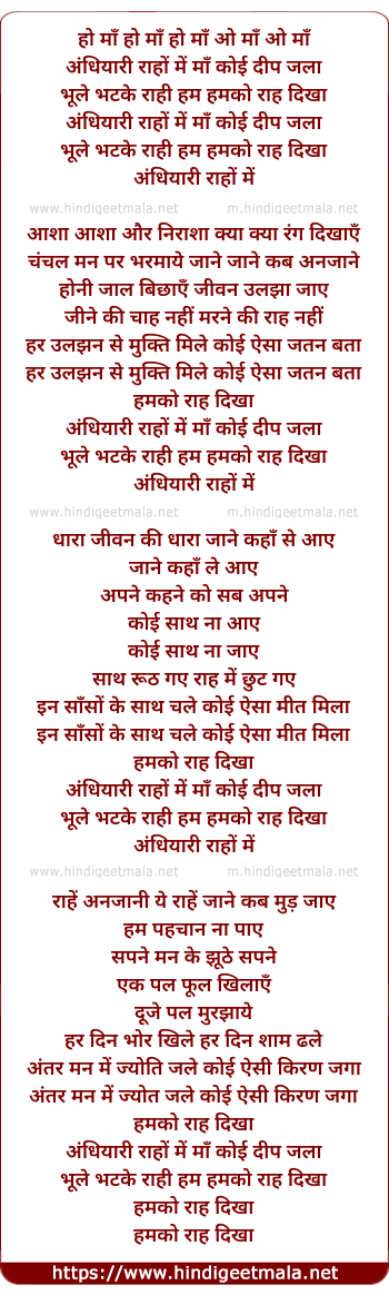 Lyrics of Andhiyari Rahon Me - अंधियारी राहों में