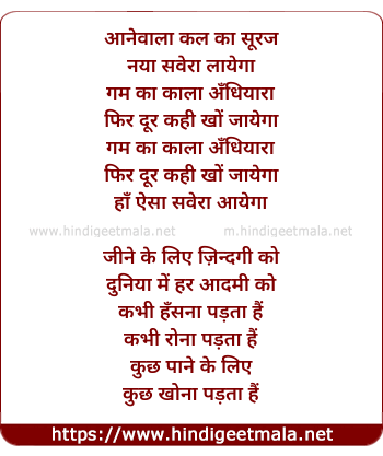 Lyrics of Anewala Kal Ka Suraj Naya Savera - आनेवाला कल का सूरज नया सवेरा