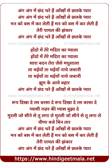 Lyrics of Ang Ang Me Chand Bhare Hai - अंग अंग में छंद भरे हैं