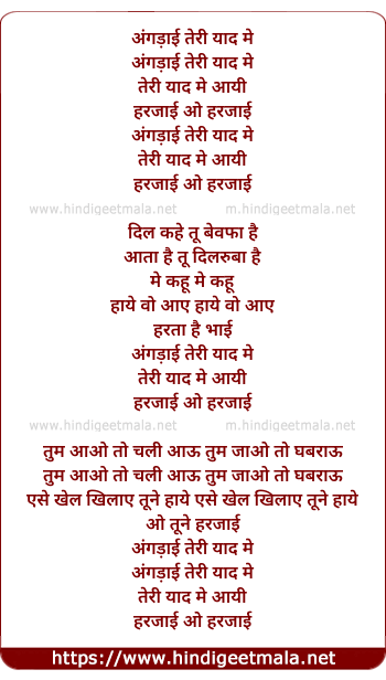 Lyrics of Angdayi Teri Yaad Me - अंगड़ाई तेरी याद मे