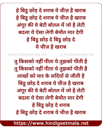 Lyrics of Angoor Ki Beti - अंगूर की बेटी