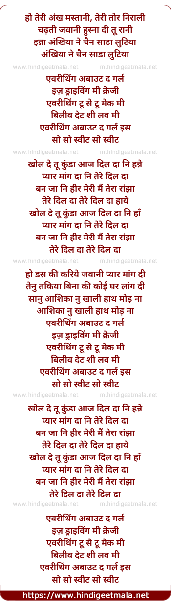 Lyrics of Ankh Mastani Teri (Crazee) - हो तेरी अंख मस्तानी, तेरी तोर निराली