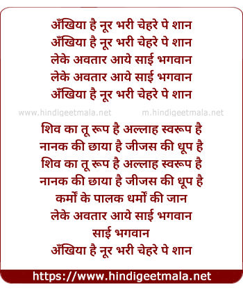 Lyrics of Ankhiya Hai Noor Bhari (Ii) - अँखिया है नूर भरी
