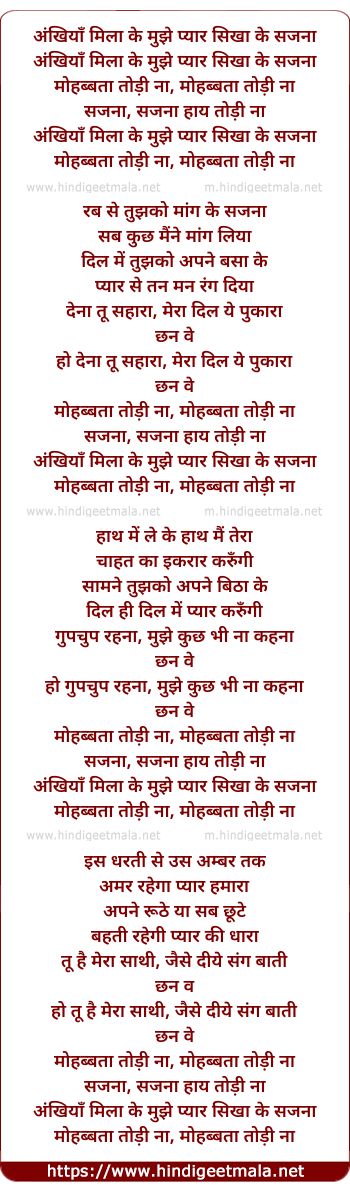 Lyrics of Ankhiya Milake Mujhe Pyar Sikhake - अंखियाँ मिलाके मुझे प्यार सिखाके